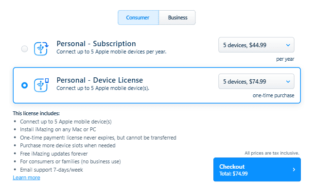 iMazing offers different types of licenses based on your needs: